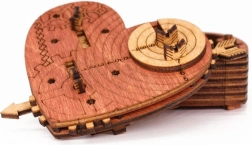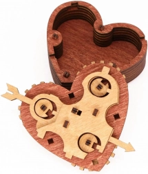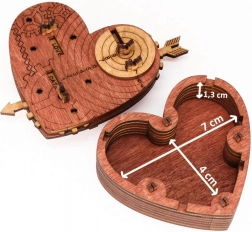 Dieses stilvolle Herz mit Zahnrädern und Gravuren verbirgt einen cleveren Code-Mechanismus. Nach dem Einstellen der richtigen drei Wörter genügt ein Zug am Pfeil, und der Deckel öffnet sich. Das Herz kann als sichere Hülle für eine Kleinigkeit, eine persönliche Nachricht oder als Designpuzzle zum Ausstellen verwendet werden.