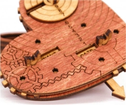 Präzise Gravuren, Zahnradelemente und eine Schichtkonstruktion machen das Puzzle zu einem stilvollen Accessoire und einer robusten Geschenkverpackung.