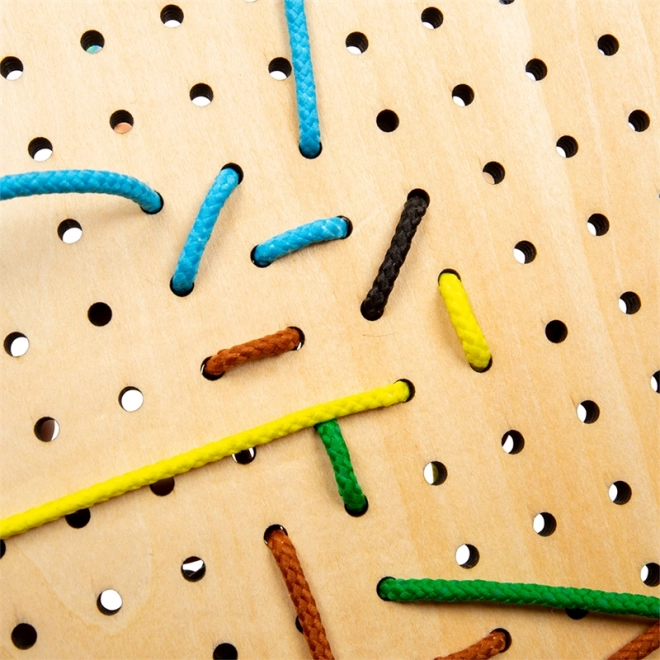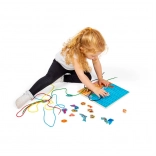 Das Durchfädeln der Teile durch die Löcher trainiert spielerisch Griff, Bewegungsgenauigkeit und Hand-Auge-Koordination – ideale Vorbereitung auf das Schreiben.