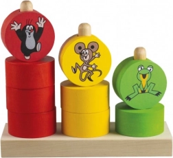 Fröhliche Pyramiden Maulwurf bieten Kindern eine großartige Möglichkeit zur Entwicklung der Feinmotorik und Kreativität. Drei bunte Stangen und 12 aufsteckbare Teile mit fröhlichen Motiven faszinieren jedes Kind. Das Produkt ist aus hochwertigem Holz gefertigt, was seine traditionelle und langlebige Konstruktion garantiert.