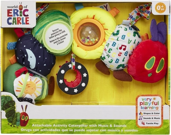 Jedes Segment der Raupe bietet einen anderen Reiz – Rascheln, Rasseln, Spiegel und verschiedene Texturen zur Förderung des Tastsinns, der Sehkraft und des Hörens.