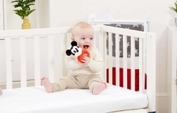 Die Plüsch-Rassel MICKEY MOUSE in beliebter Schwarz-Weiß-Rot-Kombination ist ein toller Begleiter für die ersten Entdeckungen der Welt. Weiche Materialien sind angenehm zu berühren, während das dezente Rasseln das Baby zu Bewegung, Schütteln und Erkunden motiviert.