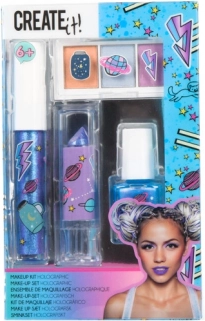 Dieses Make-up-Set ist ideal für alle kreativen Köpfe, die ihren Stil durch einfallsreiches Make-up ausdrücken möchten. Lidschatten, Lipgloss, Lippenstift und Nagellack in holografischen Farben ermöglichen es Ihnen, zu experimentieren und neue, originelle Looks zu kreieren.