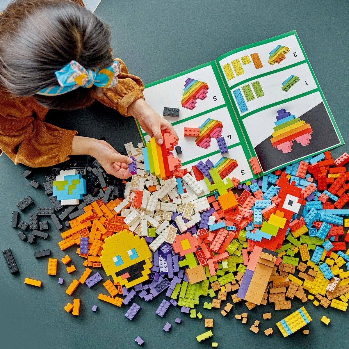 Entdecken Sie grenzenlose Baumöglichkeiten mit dem Set LEGO Classic Steine-Haufen – ein farbenfrohes Bauset mit 1000 Teilen in 10 kräftigen Farben. Kinder ab 5 Jahren genießen kreatives freies Bauen, leicht verständliche gedruckte und digitale Anleitungen sowie beliebte Modelle wie Auto, Globus, Blume, Papagei oder Herz. Perfekt für gemeinsames Bauen mit der ganzen Familie und zur Förderung von Fantasie und Feinmotorik.