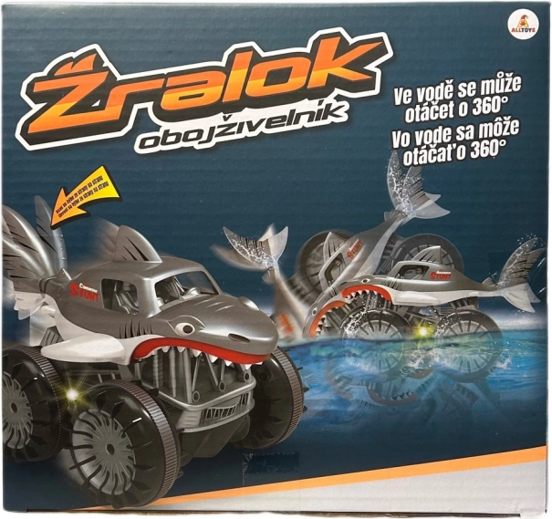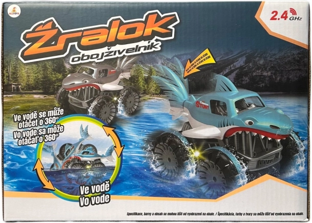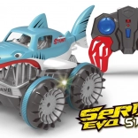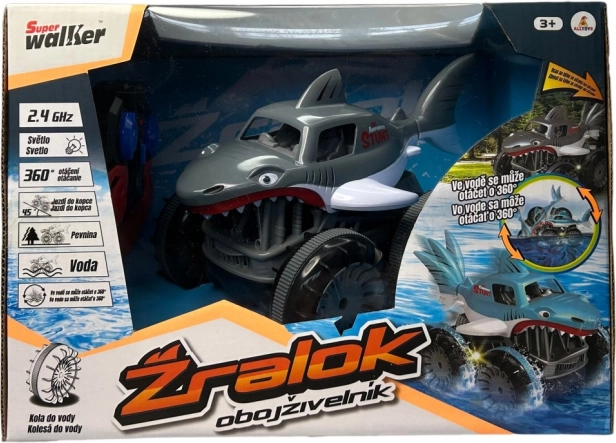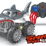 Entdecke Bewegungsfreiheit ohne Terrainlimits. Dieser amphibische RC-Hai ist für Spaß an Land und im Wasser konzipiert – von Schnee über Erde bis hin zu Gras. Dank einer flotten Höchstgeschwindigkeit von 7,5 km/h und präziser Steuerung genießt du dynamische Fahrten und sanfte Manöver.