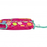 Vibrantes Design mit bunten Kreisen auf rosa Hintergrund, das Kinder für Spaß im Wasser inspiriert.