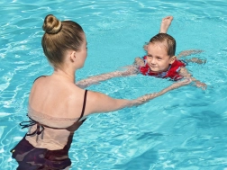 Die Kinder-Schwimmweste ist so konzipiert, dass sie Sicherheit bietet und gleichzeitig maximalen Komfort bei Wasseraktivitäten gewährt. Die Weste ist mit einem Frontreißverschluss und einem verstellbaren Gurt zur Sicherheit ausgestattet. Dank des leichten Textilmaterials mit UPF 50+, das ausbleichresistent ist, ist die Weste ideal für alle Schwimmfans.