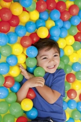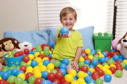 Schenken Sie Kindern stundenlangen Spaß mit einem Set aus 100 leichten Kunststoffbällen in einer praktischen Tasche. Ideal für Trocken- und Wasserbällebäder, Spielecken und Kinderlaufgitter. Die Bälle in 4 leuchtenden Farben fördern die Sinneswahrnehmung sowie die Grob- und Feinmotorik und sind dank des aufblasbaren Kerns weich, sicher und lassen sich leicht in der Kinderhand zusammendrücken.