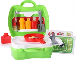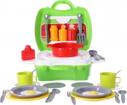 Dieses Küchenset enthält alles, was für kulinarische Ideen Ihrer Kinder benötigt wird. Es ist dank des Taschen-Designs leicht tragbar, sodass Sie es überall aufstellen und spielen können, wo es nötig ist. Das Set ist so gestaltet, dass es die kindliche Vorstellungskraft entwickelt und den Kindern hilft, während des Spielens Objekte zu erkennen.