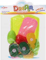 Dieses Obst-Schneideset ist ideal für Kinder, die Erwachsene in der Küche nachahmen möchten. Die Teile sind auf Kinderhände abgestimmt und das sichere „Messer“ ermöglicht das Schneiden einzelner Obststücke, die mit Klettverschluss oder Stiften verbunden sind. Das Kind genießt ein realistisches Spiel, während die Eltern entspannt bleiben.