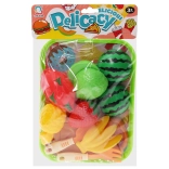 Das Obst ist so gestaltet, dass es sich leicht „schneiden“ und wieder zusammensetzen lässt, was die Spielzeit verlängert und die Fantasie anregt. Das kompakte Tablett mit den Maßen 22 × 16 cm erleichtert das Verstauen und Transportieren des gesamten Sets.