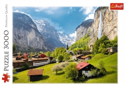 Entdecken Sie die beruhigende Welt des Puzzelns mit dem TREFL 3000 Lauterbrunnen. Das szenische Motiv mit Wasserfall, Berggipfeln und malerischem Dorf bietet ein einzigartiges visuelles Erlebnis und wird nach dem Zusammensetzen zu einer markanten Wohnraumdekoration.