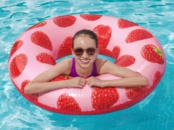 Der Duft reifer Himbeeren, ein verspieltes Design und entspanntes Treiben auf dem Wasser – dieser aufblasbare Bestway-Ring bringt in jedes Bad eine Portion Sommer. Das sanft parfümierte Material erfreut die Sinne, ohne zu aufdringlich zu sein, und der Himbeer-Print begeistert auf den ersten Blick und Geruch.