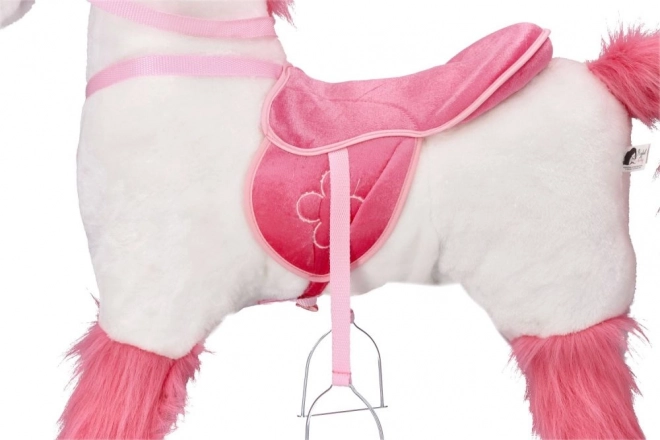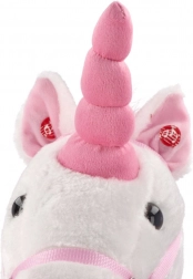 Das Einhorn hat eine weiche, plüschige Oberfläche mit einem weißen Körper und rosa Details, was es zu einer wunderschönen Ergänzung für das Kinderzimmer oder den Spielraum macht.