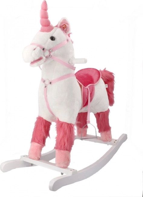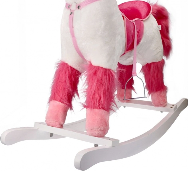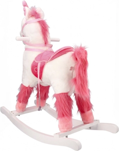 Das Einhorn ist mit einer hölzernen Schaukelbasis ausgestattet, die Stabilität gewährleistet und ein sanftes und sicheres Schaukeln für Kinder ermöglicht.