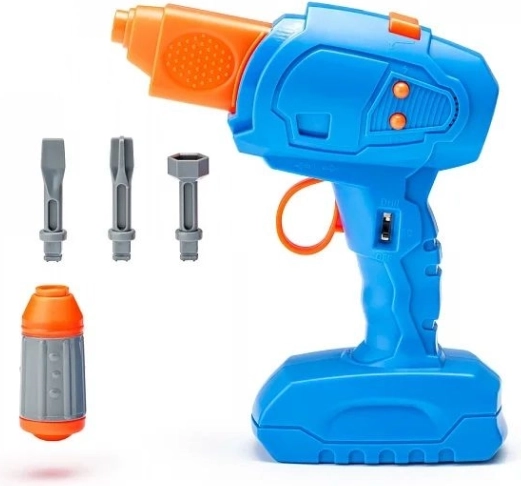 Enthalten ist auch eine Kinderbohrmaschine mit auswechselbaren Aufsätzen, die echtes Werkzeug realistisch nachahmt, jedoch für kleine Hände sicher ist. Die leichte und robuste Konstruktion aus hochwertigem Kunststoff eignet sich für den täglichen Spielspaß zu Hause und unterwegs.