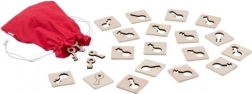 Das Tast-Memoryspiel Schlüssel ist eine originelle Aufmerksamkeits- und Sinnesaktivität, die Konzentration, Hand-Auge-Koordination und das Erkennen kleinster Unterschiede unterstützt. Die Spielenden ziehen Schlüssel aus dem Beutel und versuchen so schnell wie möglich, die passende Schablone auf der Holzplättchen zu finden – die richtige Wahl bedeutet einen Punkt.