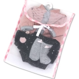 Bringen Sie Ihren Puppen mit diesem wunderschönen Kleidung für Llorens Puppe neuen Stil. Dieses 4-teilige Set umfasst ein schönes Haargummi mit Schleife, entworfen für Puppen mit einer Größe von 35 cm. Dieses detailreiche Set fördert kreatives Spielen und bringt gleichzeitig Eleganz. Handgefertigt in Spanien, jedes Stück ist einzigartig. Die Verpackung enthält einen Kunststoffbügel zur praktischen Aufbewahrung.