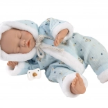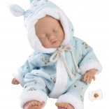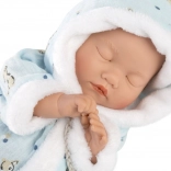 Feine Gesichtszüge, geschlossene Äuglein und eine präzise Verarbeitung machen die Puppe zu einem naturgetreuen Baby, das Kinder gern im Arm halten und umsorgen.