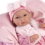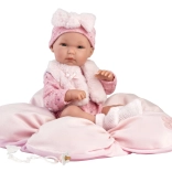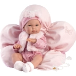 Diese realistische Mädchenpuppe aus der Reihe Llorens New Born überzeugt mit authentischen Merkmalen – von zarten Babyfalten bis zu sichtbarem Geschlecht. Dank des Ganzvinylkörpers ist sie badegeeignet und leicht zu pflegen. Die Gliedmaßen sind gelenkig befestigt, sodass die Puppe positionierbar ist und sogar selbstständig sitzen kann.