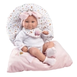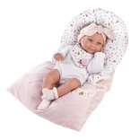 Arme und Beine sind mit Gelenken befestigt, dadurch ist die Puppe hervorragend beweglich und beherrscht auch ein stabiles Sitzen. Ein Schnuller ist im Lieferumfang als dekoratives Accessoire enthalten. Die Puppe wird in Spanien handgefertigt und kommt in einer eleganten Geschenkbox – ideal als Geschenk.