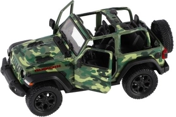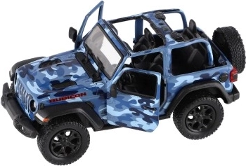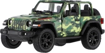 Metallmodell des Jeep Wrangler, Camo Edition mit realistischen Details, klappbaren Türen und Rückzug, verfügbar in drei Farben. Ideal für kleine Abenteurer und Sammler.