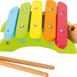 Dieses farbenfrohe Xylophon aus Holz in Schneckenform ermöglicht Kindern einen spielerischen Einstieg in die Welt der Musik. Fünf klar gefärbte Metalllamellen erzeugen reine Töne und fördern Rhythmuswahrnehmung sowie Hand-Auge-Koordination. Die Schlägel sind clever in den „Fühlern“ versteckt und stets zur Hand.