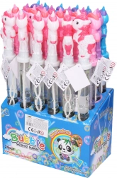 Unterhaltsamer Seifenblasenstab in Einhornform für Kinder und Erwachsene mit einem Volumen von 100 ml und einer Länge von 38 cm. Er erzeugt viele schillernde Blasen – ideal für Garten, Partys und Kinderspiele. Erhältlich in 4 Farbvarianten.