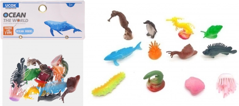 Set Figuren Meereswelt bringt das faszinierende Unterwasserreich direkt zu Ihnen nach Hause. Das Set enthält 12 verschiedene Tierfiguren mit einer Größe von 7 cm, die Ihre Kinder in die wunderbare Welt der Ozeane versetzen.