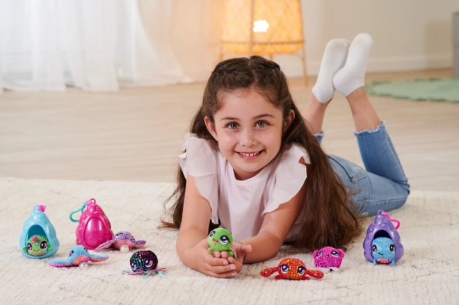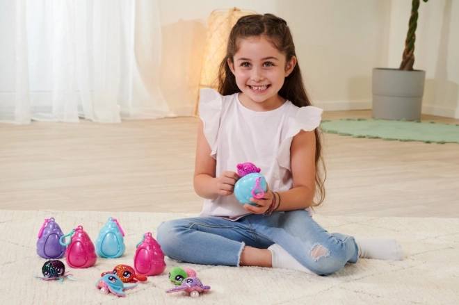 Pearly Pods zeigen die Unterwasserwelt unserer kleinen Freunde. Die niedlichen kleinen Meeresbewohner leben in ihren Muscheln und können durch eine verschiebbare Tür nach draußen schauen. Dank des praktischen Anhängers kannst du deinen Meeresfreund in seiner Muschel überallhin mitnehmen. Süße Unterwasser-Tierchen in glitzernder Ausführung, einige sogar mit einer einzigartigen Perle!