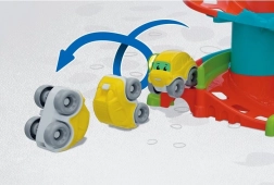 Beim Herunterfahren der Bahn überschlägt sich das Auto auf lustige Weise und macht Purzelbäume – das weckt die Neugier und die Freude am Entdecken.