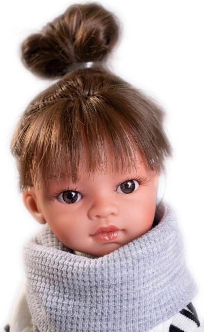 Die Puppe ist mit besonderem Augenmerk auf realistische Gesichtszüge und Haare gestaltet, die zu ihrer Authentizität beitragen.