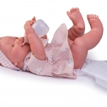 Nach dem Trinken aus der nachfüllbaren Flasche macht die Puppe Pipi in die Windel und wirkt dank der blinzelnden Augen sehr lebensecht. Perfekt für realistische Pflegespiele.