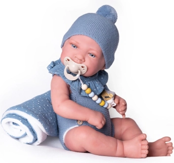 Die Puppe besteht aus weichem, hautfreundlichem Vinyl und hat eine Höhe von 42 cm. Das Unternehmen Antonio Juan verwendet organische Baumwolle für die Kleidung einiger Puppen und trägt so zu einer chemikalienfreien, umweltfreundlichen Produktion bei.
