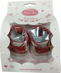 Stilvolle Schühchen für Babypuppen in der Größe 40–52 cm erfreuen jede kleine Puppenmama. Rote Sneakers mit einer Länge von 7,5 cm sitzen hervorragend, lassen sich leicht anziehen und verleihen der Puppe einen modernen Look. Ideales Zubehör zum Spielen, das Fantasie und Feinmotorik fördert. Empfohlen ab 3 Jahren.
