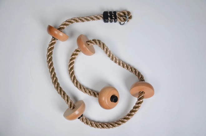 Das Kletterseil ist so konzipiert, dass es eine sichere und unterhaltsame Mglichkeit bietet, damit Kinder ihre Koordinationsffhigkeiten und Muskulatur entwickeln knnen. Dank der Holzsprossen haben Kinder eine bessere Mglichkeit, ihre Position zu fixieren, was ihren Komfort und ihr Vertrauen erhfft.