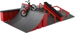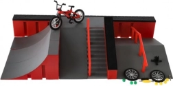 Rampe, Stufen und Geländer sind bereit für Trick-Kombinationen auf dem Skateboard und dem Mini-BMX. Die stabile Basis sorgt für sanfte Landungen und eine sichere Fingerfahrt.