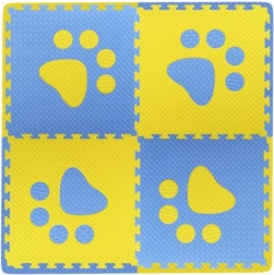Schaumstoff-Kinderteppich mit blauen und gelben Pfotenabdrücken