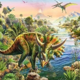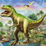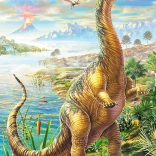 Eine imposante prähistorische Landschaft mit einem Sauropoden inspiriert Kinder zum Entdecken und stärkt die Geduld beim Puzzeln.