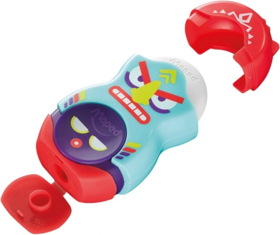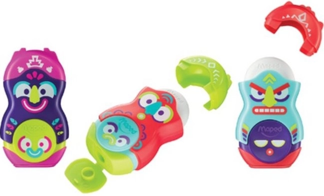 Bringen Sie Schwung ins Federmäppchen von Kindern und kreativen Erwachsenen. Der MAPED Loopy Totem kombiniert präzises Anspitzen von Bleistiften und Buntstiften mit einem praktischen PVC-freien Radiergummi. Der integrierte Spänebehälter sorgt für Ordnung auf Tisch und in der Tasche.