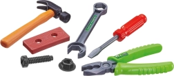 Im Lieferumfang enthalten ist ein Set aus sicherem Kunststoffwerkzeug (Hammer, Schlüssel, Zange, Schraubendreher und Zubehör), das die Feinmotorik fördert und kreatives Spielen anregt.