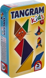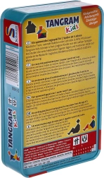 Dieser Kinder-Tangram in der Metalldose bietet einen spielerischen Weg von ersten einfachen Formen bis zu ausgearbeiteten Silhouetten von Tieren und Figuren. Dank drei Schwierigkeitsstufen bauen Kinder nach und nach Sicherheit und Freude am Erfolg auf. Ist eine Aufgabe zu anspruchsvoll, können die Teile direkt nach der beiliegenden Lösung gelegt werden.