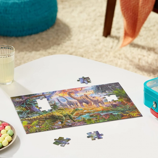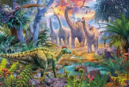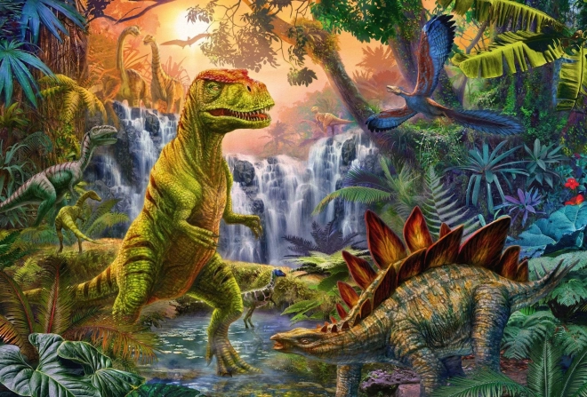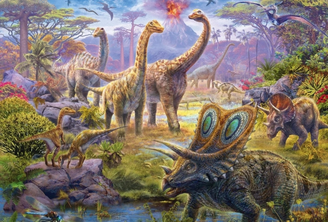 Jedes Puzzle bietet eine andere Szene aus der prähistorischen Welt, verschiedene Arten von Dinosauriern sind in detailliert ausgearbeiteten Illustrationen abgebildet.