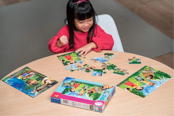 In einer Schachtel finden Sie zwei Kinderpuzzles – jedes mit 12 Teilen und den gleichen Abmessungen. Abmessungen des fertigen Puzzles ca. 26 x 18 cm
