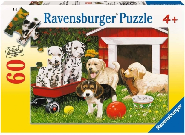 Tauchen Sie ein in den Ravensburger Puzzlespaß! Dieses Puzzle mit dem Motiv Welpenparty enthält 60 Teile und ist ideal für Kinder und Erwachsene, die süße Welpen lieben.